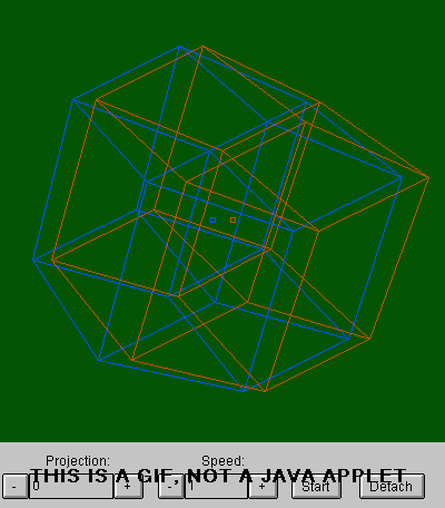 A dynamic 3 dimensional drawing (two spatial plus one time) of a 4 dimensional depiction of a 5 dimensional cube is shown.
